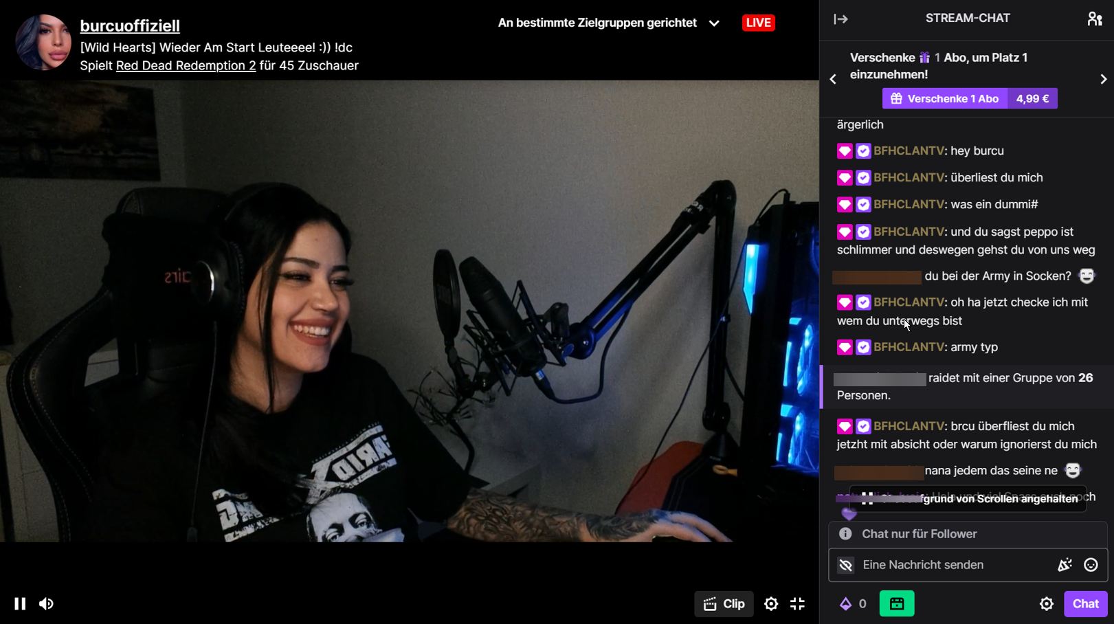 BFHClanTV - Grenzüberschreitend und Aufdringlich gegenüber der Streamerin burcuoffiziell
