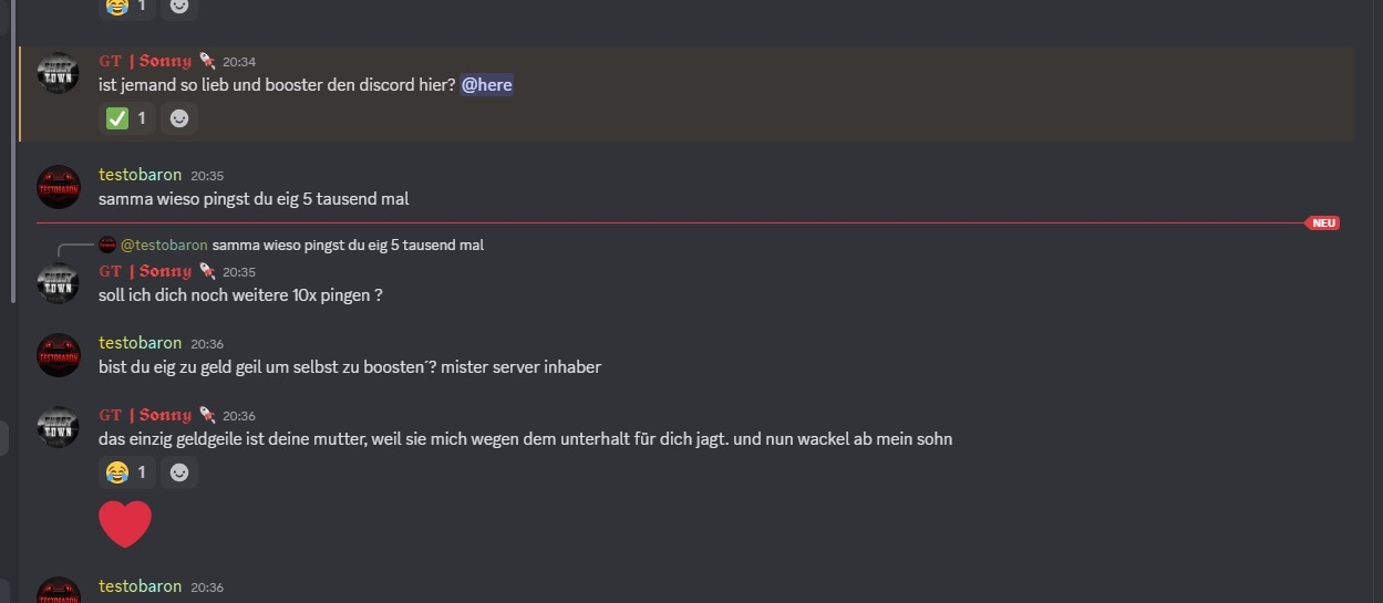 Sonny beleidigt gerne mal seine eigenen Spieler, aus verschiedensten Gründen. Einmal wollen sie seinen Discord Server nicht boosten und kritisieren das ständige Markieren der Rolle. Die Antwort darauf ist eine Beleidigung. Ein anderer ehemaliger Spieler streamt auf einem anderen Projekt. Die Reaktion: Wer kommt bei dir angekrochen, du Fischkopf? Die nächste Beleidigung. Wie man sieht, ist Sonny alles, was ein Inhaber nicht sein sollte. Abgehoben, kritikunfähig und vorallem beleidigend und respektlos.