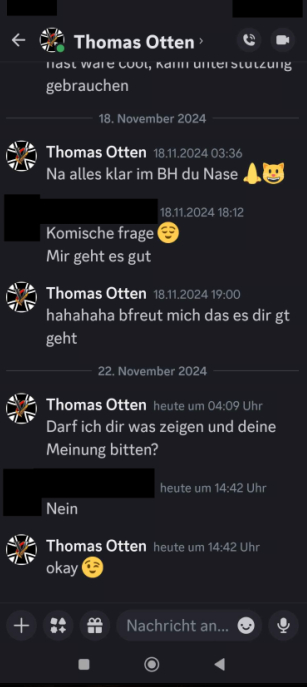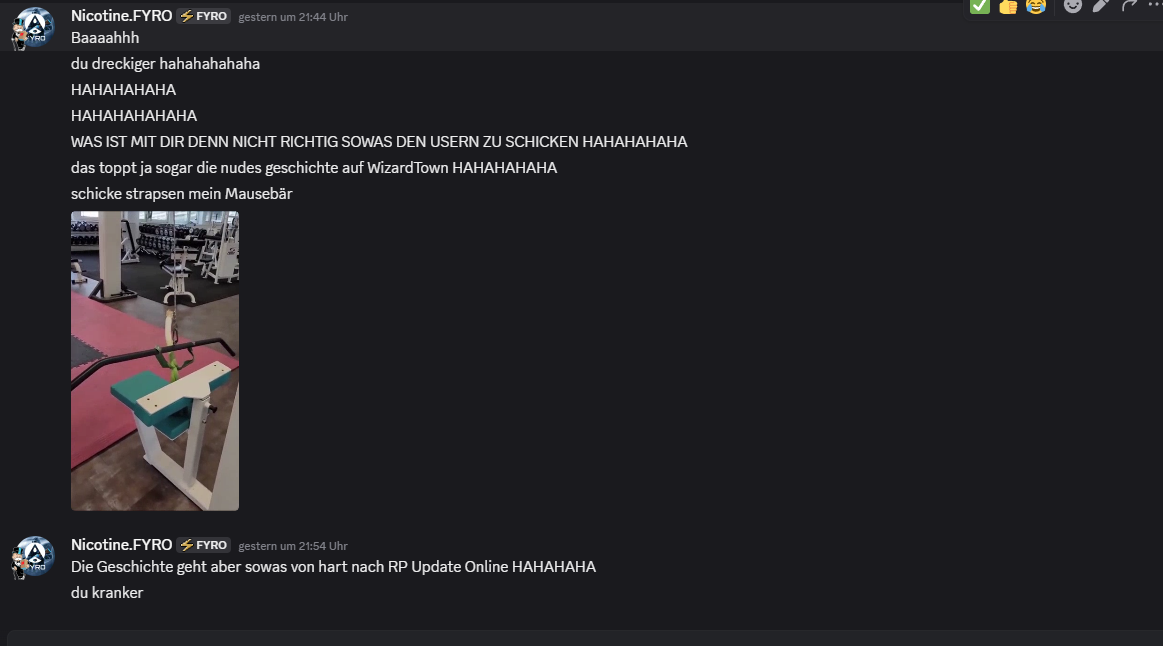 Im heutigen Beitrag geht es um etwas, was auf dem Server Ghost Town passierte. In folgenden Screenshots werdet ihr sehen, wie die ehemalige Projektleitung "Psycho", damals "Thomas Otten", Spielerinnen Fotos in Strapsen zusendete. Außerdem gab es sehr unangenehme Interaktionen mit Spielerinnen, einige davon sogar vergeben. Trotzdem konnte es Psycho nicht lassen und musste seine Fotos an Frauen verbreiten, um irgendwie Anerkennung dafür zu bekommen. Doch es kam nicht so, wie er es sich erhoffte, aber seht selbst...