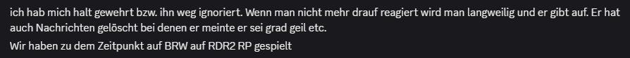Was denkt ihr über dieses Verhalten nach unserem letzten Beitrag? Denkt ihr, dass wir über solche Mitglieder der RP-Community nicht länger berichten sollten - oder sollten wir unsere Reichweite weiterhin dafür nutzen, den Opfern eine Stimme zu geben?
