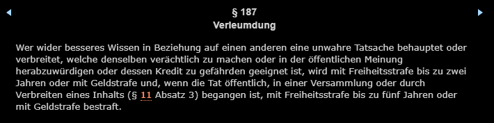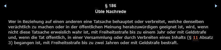 Eine Verleumdung setzt voraus, dass es wider besseren Wissens geschehen sein müsste. Dies ist klar zu verneinen, denn auch wenn sich BabaMoe so aufführt, als müsste man ihn kennen, war er jedem von uns gänzlich unbekannt, bevor wir die Einsendung erhalten haben. Es kann also nicht davon gesprochen werden, dass wir es besser gewusst hätten, wenn es denn überhaupt falsch gewesen ist - wofür es keinerlei Anhaltspunkte gibt… im Gegenteil.