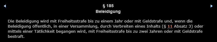 Hier wird es bisschen tricky - denn die Beleidigung kennt solche Einschränkungen gemäß dem Gesetzestext kaum und Laien würden jetzt vermuten, dass es hier keine Einschränkung gäbe. Dies ist aber falsch. Grundsätzlich werden alle Gesetze, bis zu den Grundrechten durch die Grundrechte eingeschränkt. So kann eine Beleidigung nur strafbar sein, sofern sie nicht durch ein Grundrecht gedeckt wäre - wie beispielsweise der Meinungs- oder auch Pressefreiheit. Hier findet dann eine Güterabwägung statt, die in den seltensten Fällen zugunsten der allgemeinen Gesetze ausfällt, weil die Anforderungen dafür unglaublich hoch sind.