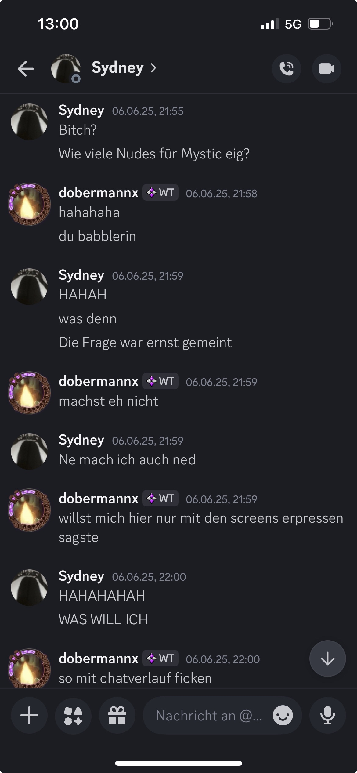 Dort habt ihr den gesamten Kontext - zumindest den von der Seite der Spielerin, die angeblich dem Projekt nur “schaden will”. dobermannx hat alle seine Nachrichten aus der Vergangenheit gelöscht, obwohl an der Behauptung angeblich nichts dran ist. Wir können euch sogar zeigen, welche “Nudes” von Sydney gemeint waren, als sie fragte: “Wie viele Nudes für Mystic eig?”