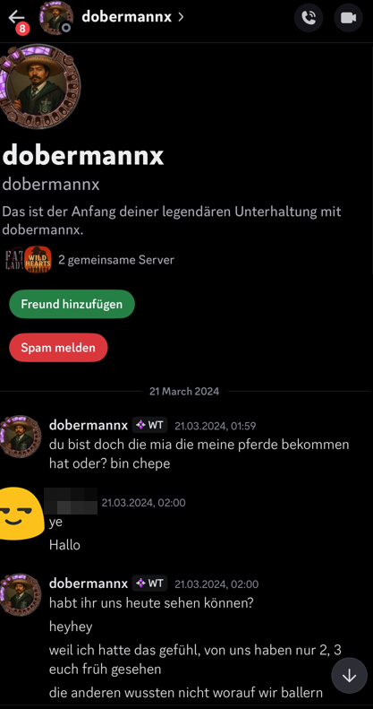 Wizard Town Projektleitung El Nacho, auch dobermannx genannt, fordert Nacktfotos von Spielerin für eine Ranch!